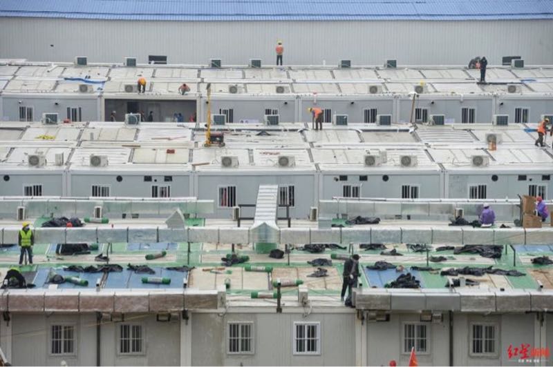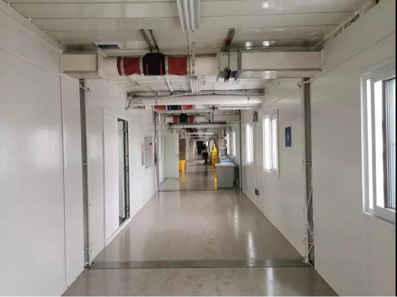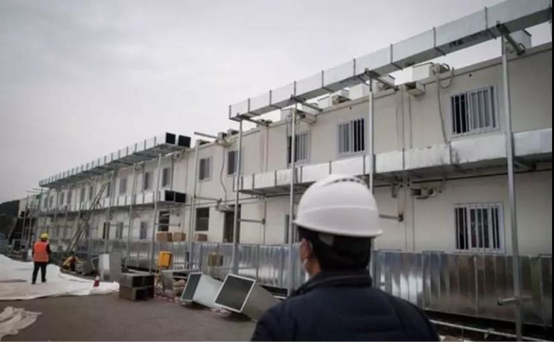 小火神山采用集装箱式箱体活动板房进行模块化拼接,板房形成标准单元。这几年国家大力提倡装配式建筑,不同于小汤山,小汤山建设已经是17年前的事,当时我们国家的建筑技术与今天相比有很大差距,小汤山可供选择的建筑材料没有现在这么多,工业化程度也没有现在高,小汤山当时基本上采用轻钢骨架与复合板的形式来搭建。