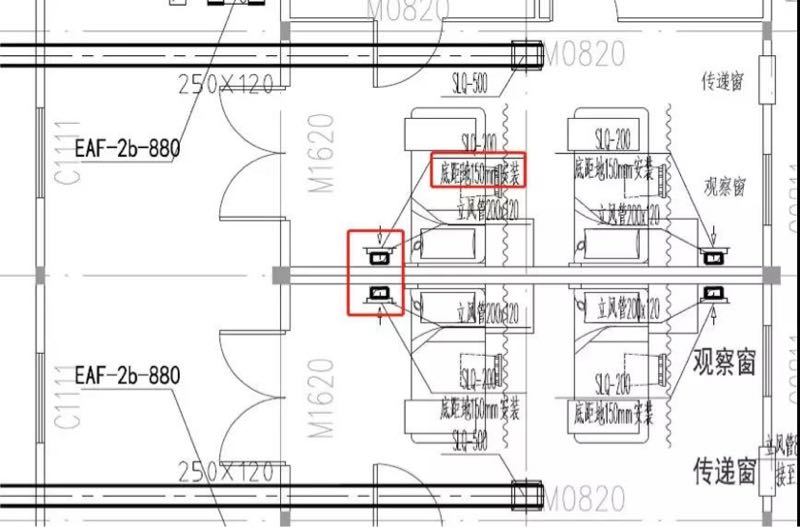 设计呼吸道传染病污染区和半污染区内的排风系统,在系统末端设置高效过滤器(不低于H12级)控制菌落数和气凝胶,限制病毒的宿源,抑制受控环境的人员释放病毒和细菌滋生条件。