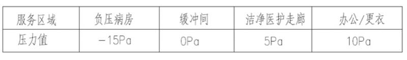 负压隔离病房与其相邻区域缓冲间、洁净走廊压差应保持不小于5pa的负压值。火神山各区域的压力值如下表: